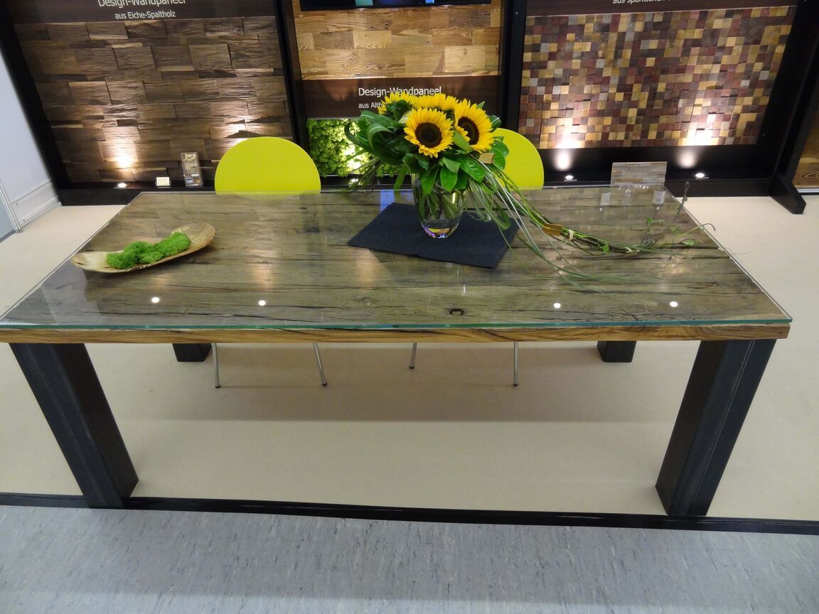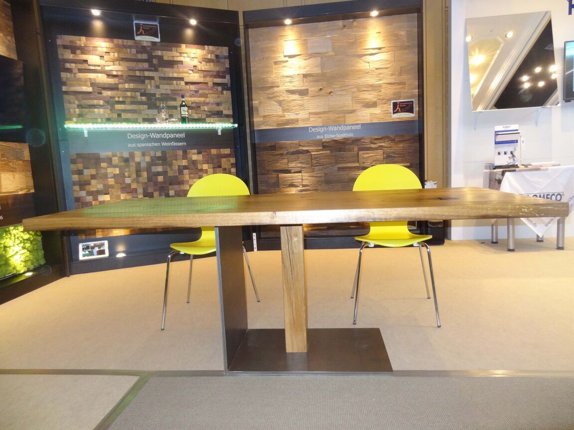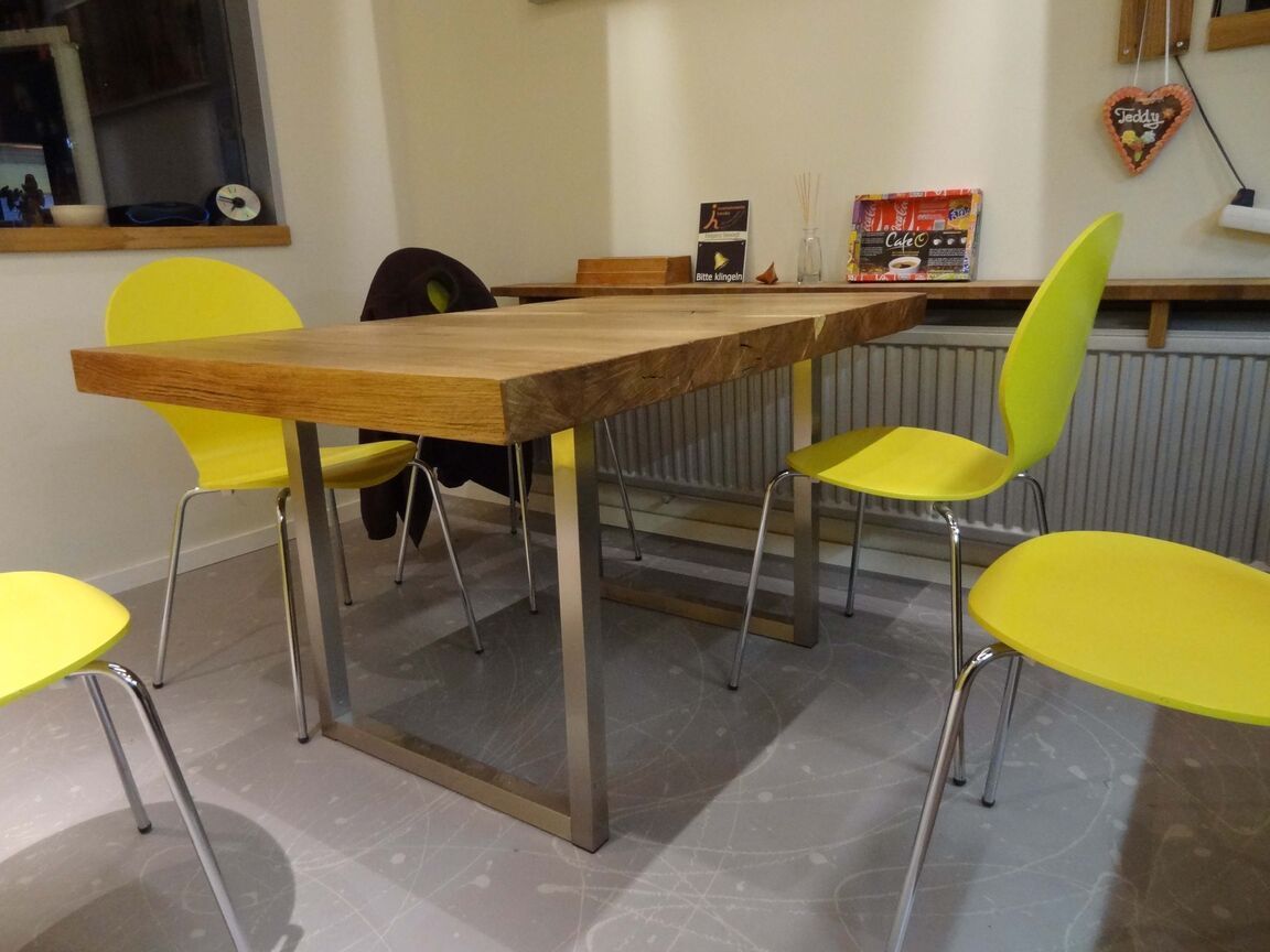 Wir bauen Ihnen Ihren Tisch nicht nur aus den üblichen Hölzern, sondern auch aus alten Eichenbohlen und geben ihm den nötigen Stand durch besondere Tischgestelle aus Holz und Stahl. So wird jeder Tisch zu einem ausdrucksstarken Unikat.