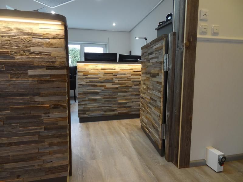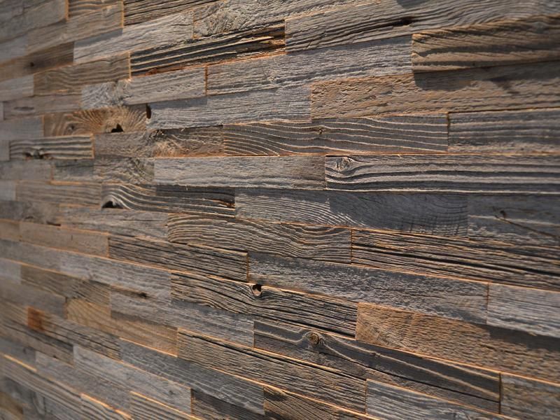 Wir verarbeiten das Spaltholz aus Eiche und Räuchereiche. Bei Altholz haben Sie die Wahl zwischen sonnenverbranntem Silbergrau und verschiedenen Brauntönen. Wir können die Wandpaneele aus größeren Holzformaten oder aus kleineren Riemchen fertigen, die durch unterschiedliche Materialstärken eine dreidimensionale Wirkung haben.